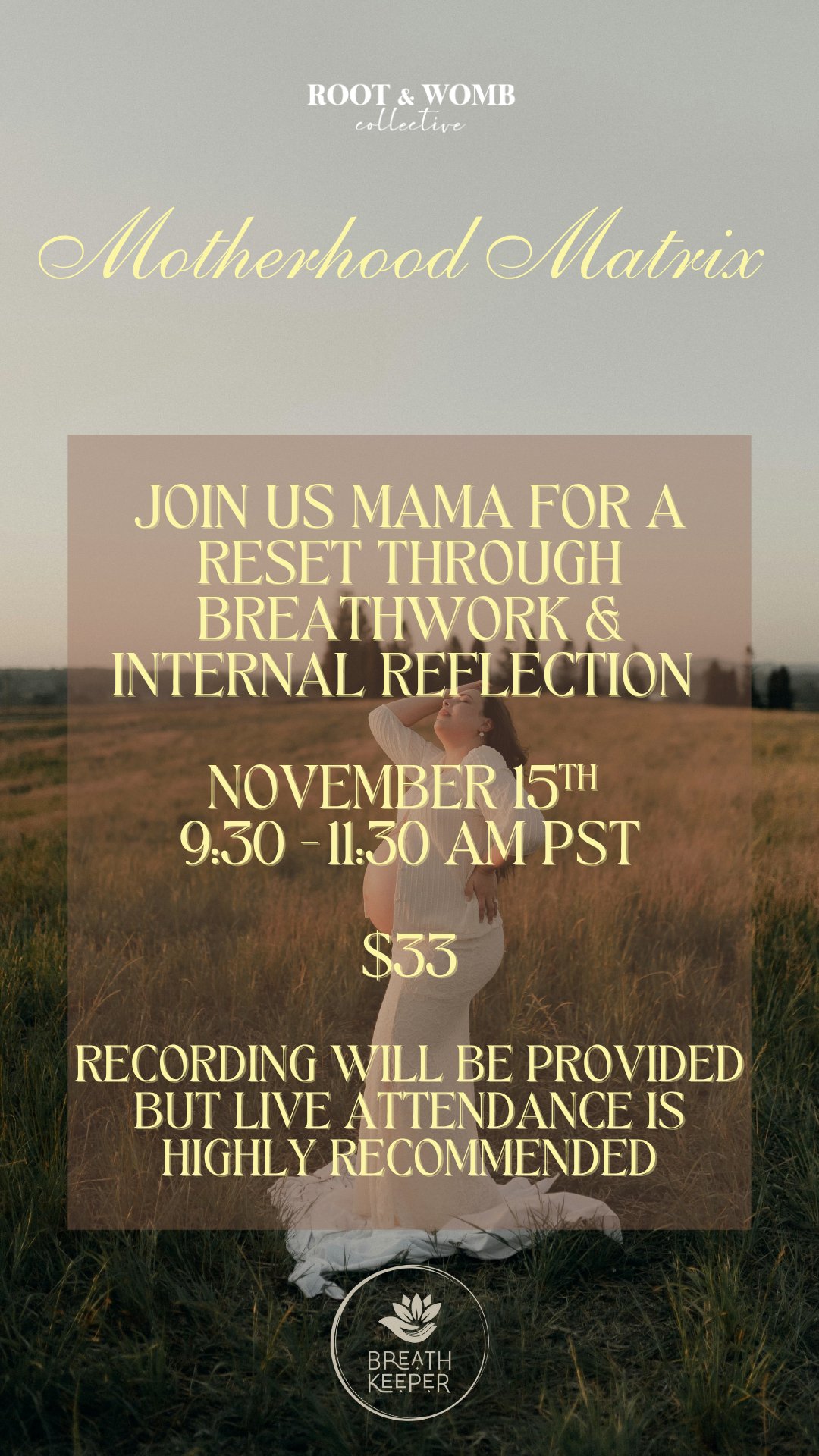 Join us for an enriching conversation & breathwork circle exploring motherwhood as the center of the matrix.